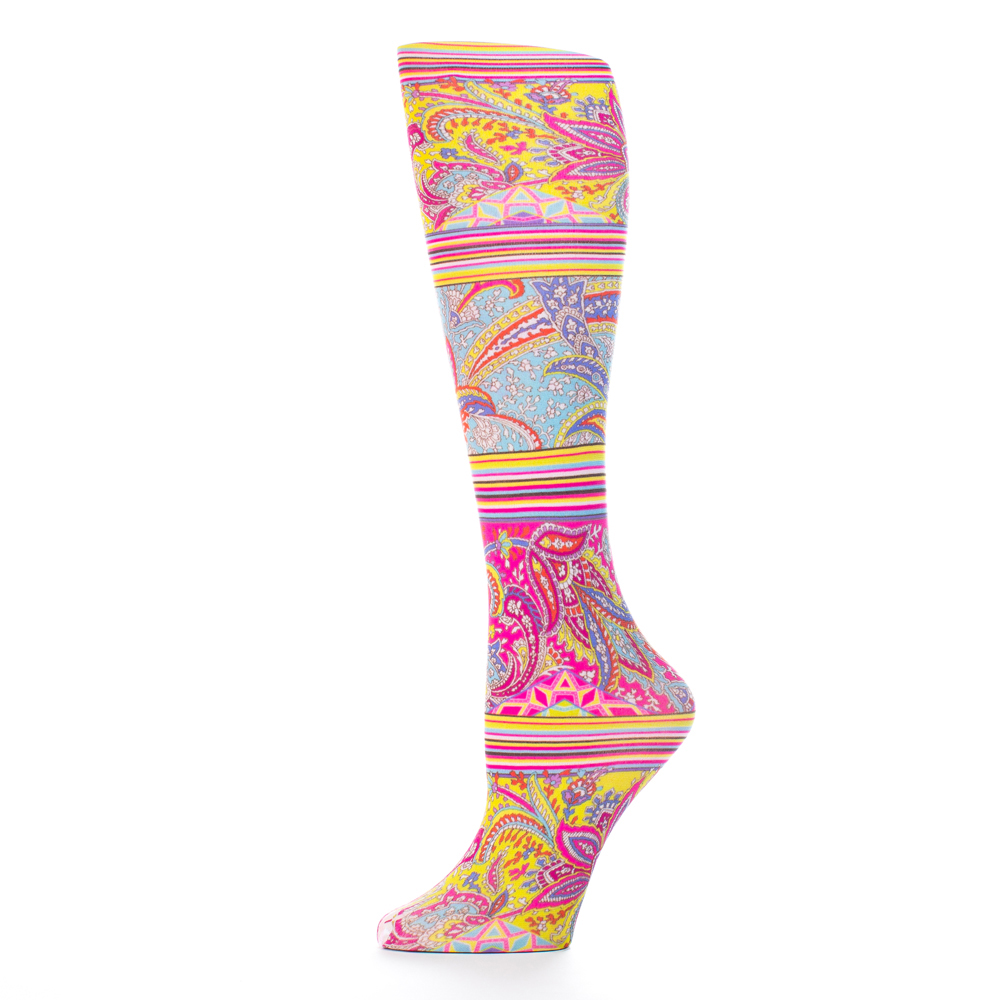 Celeste Stein Celeste-Stein-187-2150 18 in. Womens Trouser Sock with Bright Paisley Pattern - Multi Color