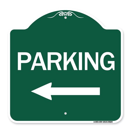 Designer Series Parking With Left Arrow, Green & White Aluminum Architectural Sign