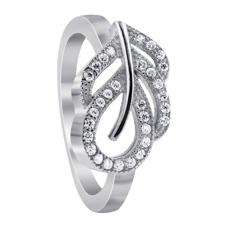 Gem Avenue 925 Sterling Silver Round Clear Cubic Zirconia Leaf Design Ring