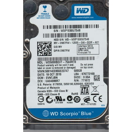 <p>HDD with Serial Number: WXE1E50JN732<br />Model: <b>WD5000BEVT-75A0RT0</b><br />Date: <b>19 OCT 2010</b><br />DCM: <b>HHNTJHB</b><br />Product of: <b>Malaysia</b><br />PCB Sticker: <b>2061-771672-F04 AA</b><br />PCB Revision: <b>2060-771672-004 REV A</b></p> <p>Micro Jogs<br />------------------------------<br />LH : PH : Micro Jog (Hex/Dec)<br />------------------------------<br />0 : 0 : A96/2710<br />1 : 1 : A80/2688<br />2 : 2 : AAA/2730<br />3 : 3 : A7E/2686</p> <p>ROM F/W version......................... : 0014003Rb<br />Preamp vendor........................... : 0x0001<br />Preamp revision......................... : 0x0003</p> SKU: 20058 <br /> <br /><br /> The item included is exactly what is on the picture. Picture is not a stock photo; it is the picture of an actual item sold. If item description and the picture vary, please contact us for clarification. We will gladly look up any other information about this hard drive or PCB, in case the information that you are looking for is not specified in the listing and not clear on the picture.