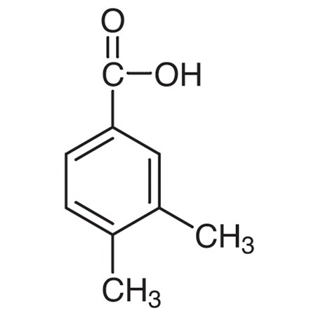 Chemical Name: 3,4-Dimethylbenzoic Acid<br>CAS: 619-04-5<br>MDL Number: MFCD00002524<br>Purity: >99.0% (T)<br>Molecular Formula: C9H10O2<br>Molecular Weight: 150.18<br>Melting Point (degC): 166<br>Storage Temperature (degC): 15-25 degC<br><br>Synonyms: o-Xylene-4-carboxylic Acid<br>Product Categories: Chemistry, Organic Building Blocks, Carbonyl Compounds [Non-Heterocyclic Building Blocks]<br><br>TCI America, a division of Tokyo Chemical Industry, offers more than 27,000 high quality organic reagents for research and development.