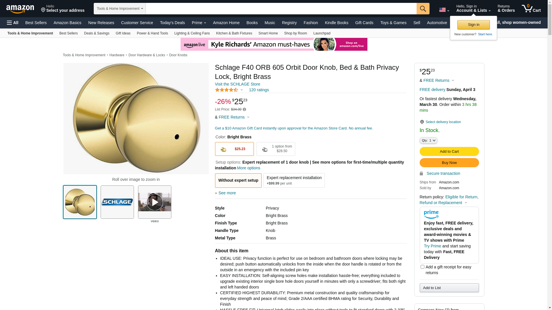 | Feature | ORBIT PRIVACY KNOB BRT BRASS |
