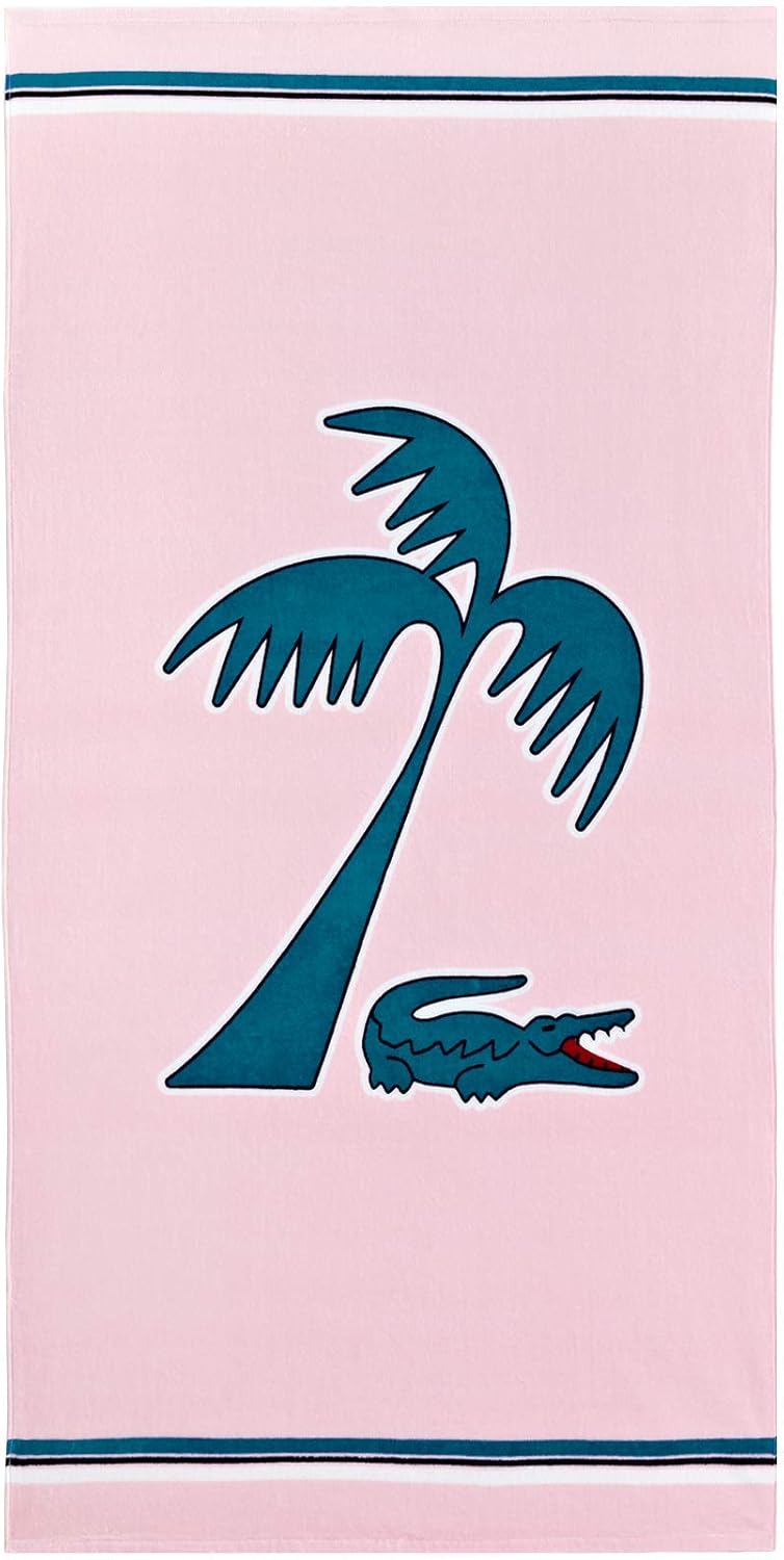 Lacoste Murphy 100% Cotton Beach Towel, 36" W x 72" L, Pink/Teal Palm