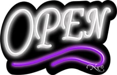 | Feature | Deco Style White Open With Purple Line Neon Sign is handcrafted with Real Glass Tube Neon Sign. |