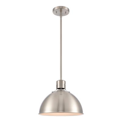 Introducing the ELK Home Zayne 12" W 1-Light Pendant. This modern, urban/industrial style pendant is sure to add an elegant touch to any room in your home. The brushed nickel finish and metal dome shade give it a classic, timeless look that will blend in with many decor styles. The light source is an incandescent bulb that casts light downward, illuminating any space. The Zayne Pendant is perfect for any kitchen, living room, hallway, or bathroom. It features a 12in width, 12in depth, and 9.75in height, making it the perfect size for most spaces. It is UL/CUL rated for safety and comes with a 1 year limited warranty. It is hardwired, so professional installation is recommended. This product is designed to be easy to install with an included installation pack. It is also dimmable and compatible with LED bulbs and dimmer switches, making it possible to adjust the light output and to save on energy costs. It is an ideal lighting solution for any room in your home.