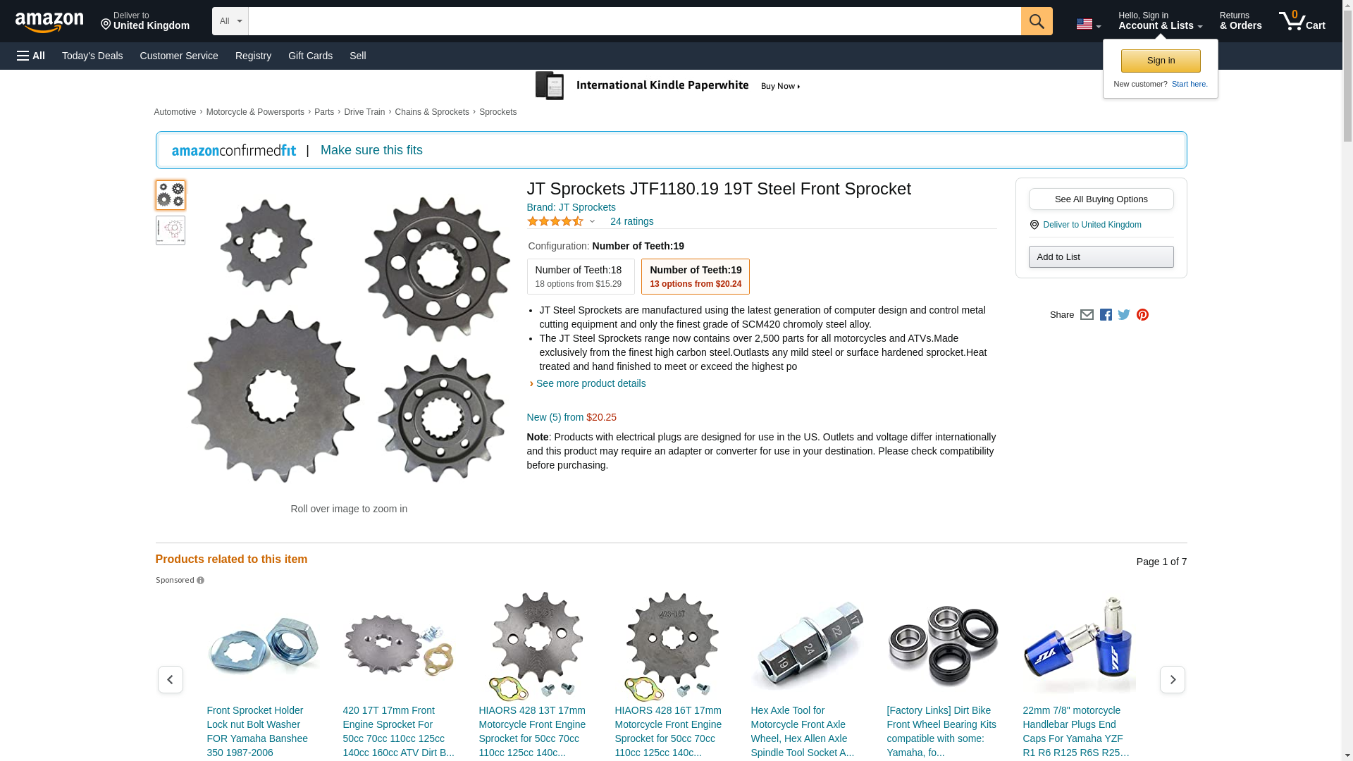 JT Sprockets JTF1180.19 19T Steel Front Sprocket