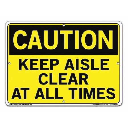 Vestil SI-C-36-C-AL-040 KEEP AISLE CLEAR AT ALL TIMES Caution Sign, Aluminum, 0.040" Overall Size, 14.5" W x 10.5" H