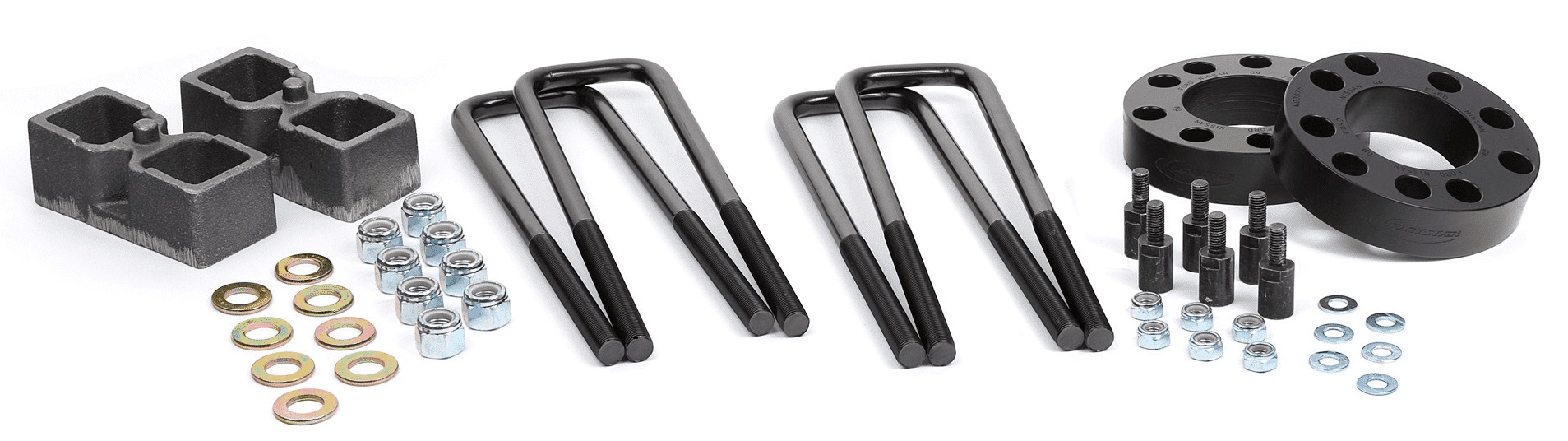 - No Metal-on-Metal Contact as with Other Leveling Kits; Strut Spacers (Easy Install), 2 inch Rear Blocks w/ U-bolts