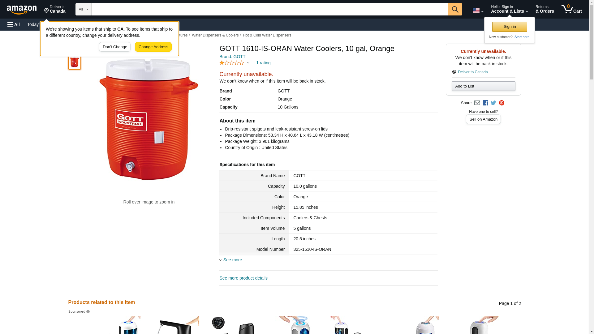 GOTT 1610-IS-ORAN Water Coolers, 10 gal, Orange