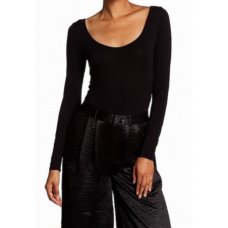 Harlowe & Graham NEW Black Womens Large L Bodysuit Scoop Neck Knit Top