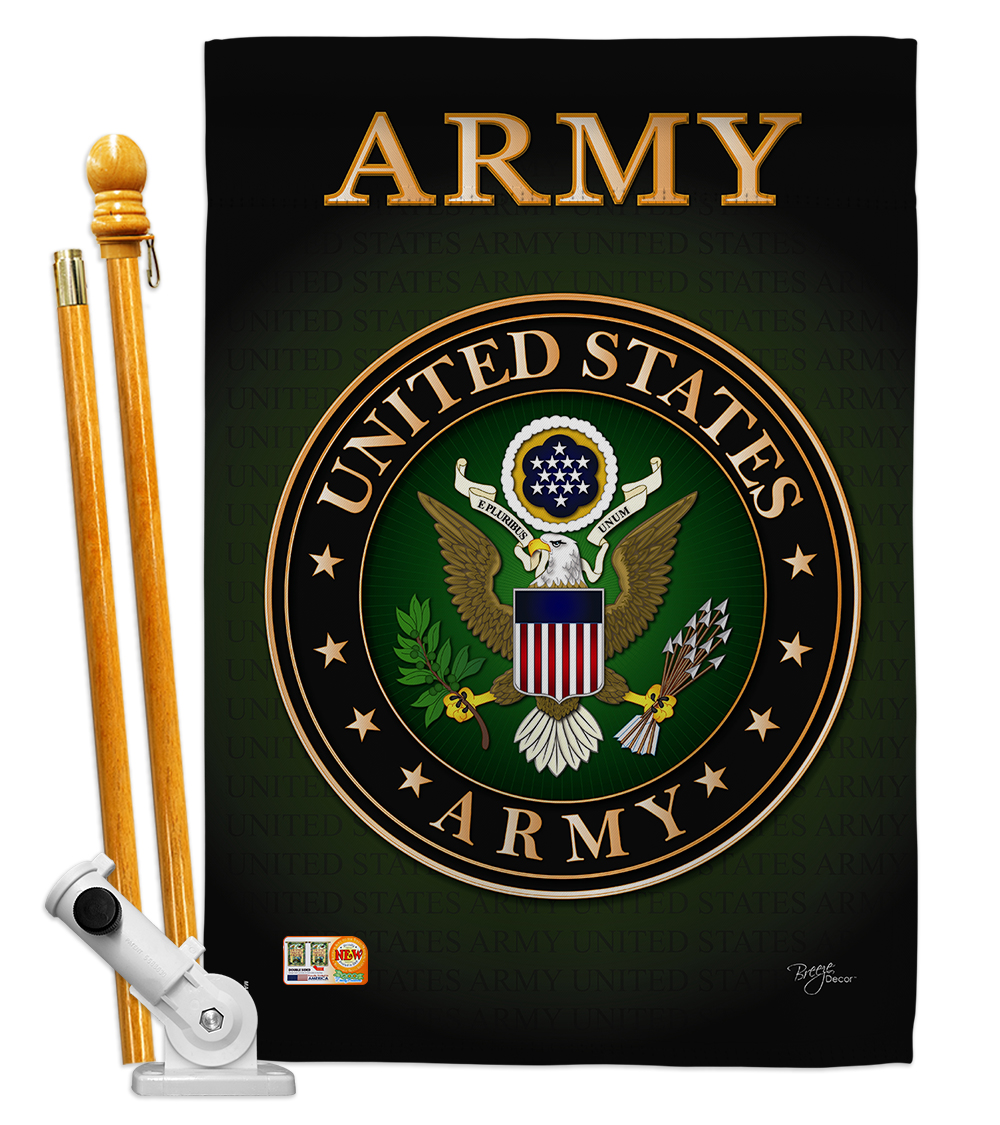 - Army Americana Military Impressions Decorative Vertical Double Sided House Flag Set with Pole Bracket