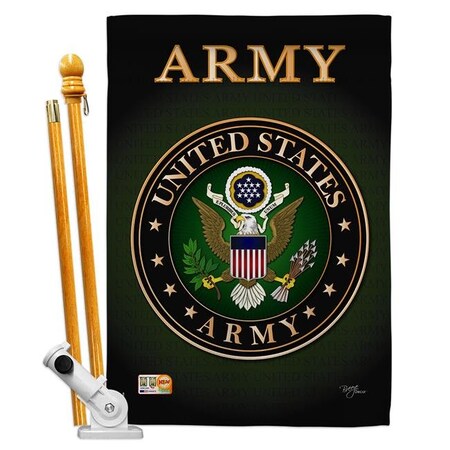 Breeze Decor BD-MI-HS-108055-IP-BO-D-US10-UA 28 x 40 in. Army Americana Military Impressions Decorative Vertical Double Sided House Flag Set with Pole Bracket Hardware