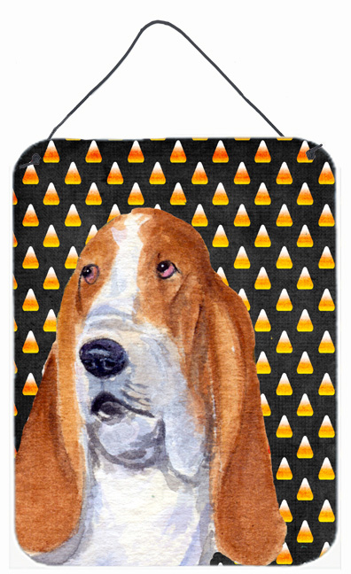 Carolines Treasures SS4321DS1216 12 x 16 in. Basset Hound Candy Corn Halloween Portrait Aluminum Metal Wall & Door Hangi