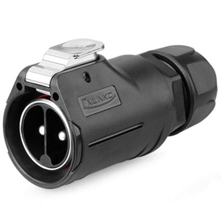 The Cnlinko LP-28-C02PE-21-001 is a 2 pin male cable plug for power applications. Accommodates 6 AWG cable. Rated for 500V and 50 A.