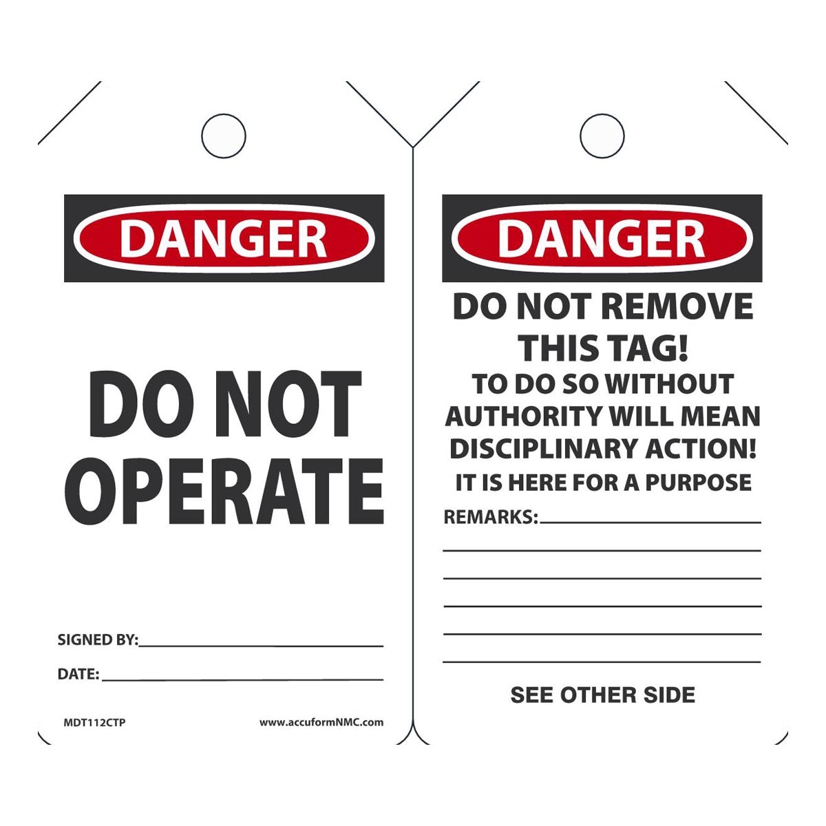 Order MDT112CTP by Accuform "Danger Do Not Operate" Safety Tag, PF-Cardstock - US Mega Store