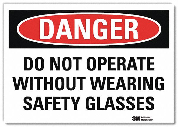 Smartsign U3-1350-RD_14X10"DANGER DO NOT OPERATE WITHOUT WEARING SAFETY GLASSES" Reflective Self-Adhesive Decal, 14" x 10"