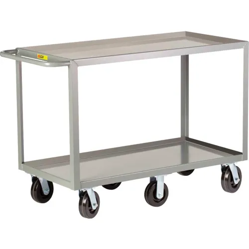 Little Giant 2GL6W-3048-6PH 6-Wheeled Heavy-Duty Shelf Truck, 2 Shelves, 3600 lb. Capacity, Lipped Shelves, 6 Wheel Design, 30" Width x 48" Length, Gray