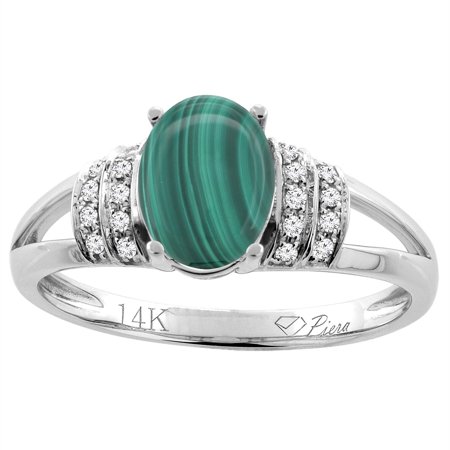 14K Gold Natural Malachite Ring Oval 8x6 mm Diamond Accents, sizes 5 - 10