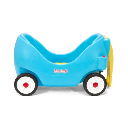 Simplay3's new High Back Wagon for two children is designed with safety in mind with stylish high back seats and seat belts for two! Deluxe features include durable, deep tread rubber tires for all terrain wagon adventures or quiet wagon rides along sidewalks. Front caster wheels allow for easy turns and confident maneuverability around tight corners! Wagon handle is sized for "just close enough" supervision and conveniently folds for easy storage and portability. The high back wagon offers storage beneath the seats and includes drink holders! So that you and your toddler may spend more time playing and less time with assembly and instructions, our custom left and right front tire axles are already assembled for your convenience. Adult assembly required. Made in the USA.