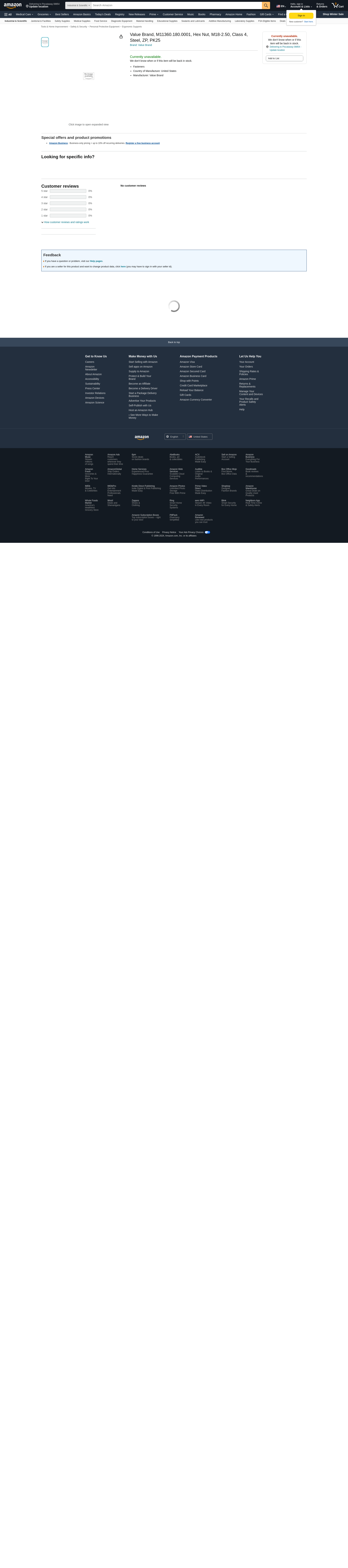 Value Brand, M11360.180.0001, Hex Nut, M18-2.50, Class 4, Steel, ZP, PK25