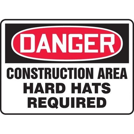 Accuform MCRT136VA Aluminum Sign, Legend "Danger Construction Area Hard Hats Required", 10" Length x 14" Width, Red/Black on White