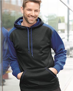 Badger B64285533 Pro Heather Colorblocked Hooded Sweatshirt, Steel Heather & Maroon - Small