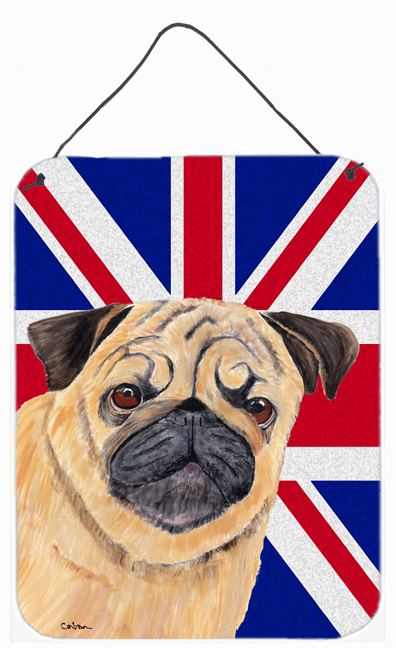 Carolines Treasures SC9828DS1216 Pug With English Union Jack British Flag Aluminium Metal Wall Or Door Hanging Prints