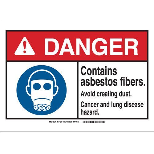 Brady 144939 DANGER Contains Asbestos Fibers. Avoid Creating Dust. Cancer And Lung Disease Hazard. Sign - Light Duty Plastic - Black/Red/Yellow on White - 7 x 10
