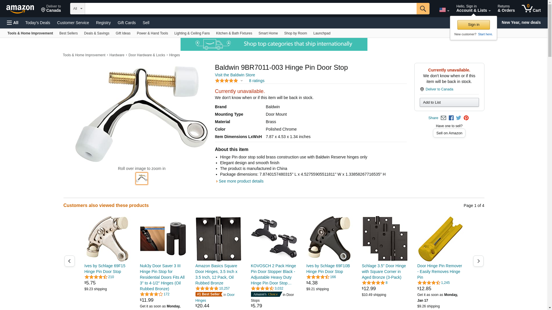 | Feature | Hinge Pin door stop solid brass construction use with Baldwin Reserve hinges only |