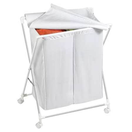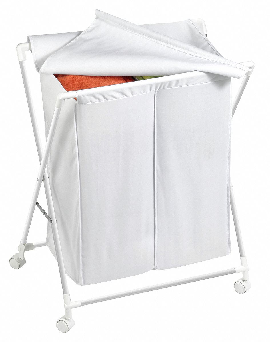 Honey-Can-Do, HMP-01386, Hampers, Closet Organizers, Features: Two sorting compartments make it simple to separate whites from colors, and can hold up to four loads of laundry. Cloth flip-top lid conceals contents and helps the often messy laundry area appear neat. Removable cloth liner easily detaches from sturdy metal frame to function as a portable laundry bag. Help keep your space neat with this 2-in-1 hamper and laundry bag. Rolling casters allow easy maneuvering and trouble-free transportation to laundry room. Hamper folds flat to be stowed away without worry when not in use.Specifications: Height: 32 Width: 15-1/2 Length: 25-1/2