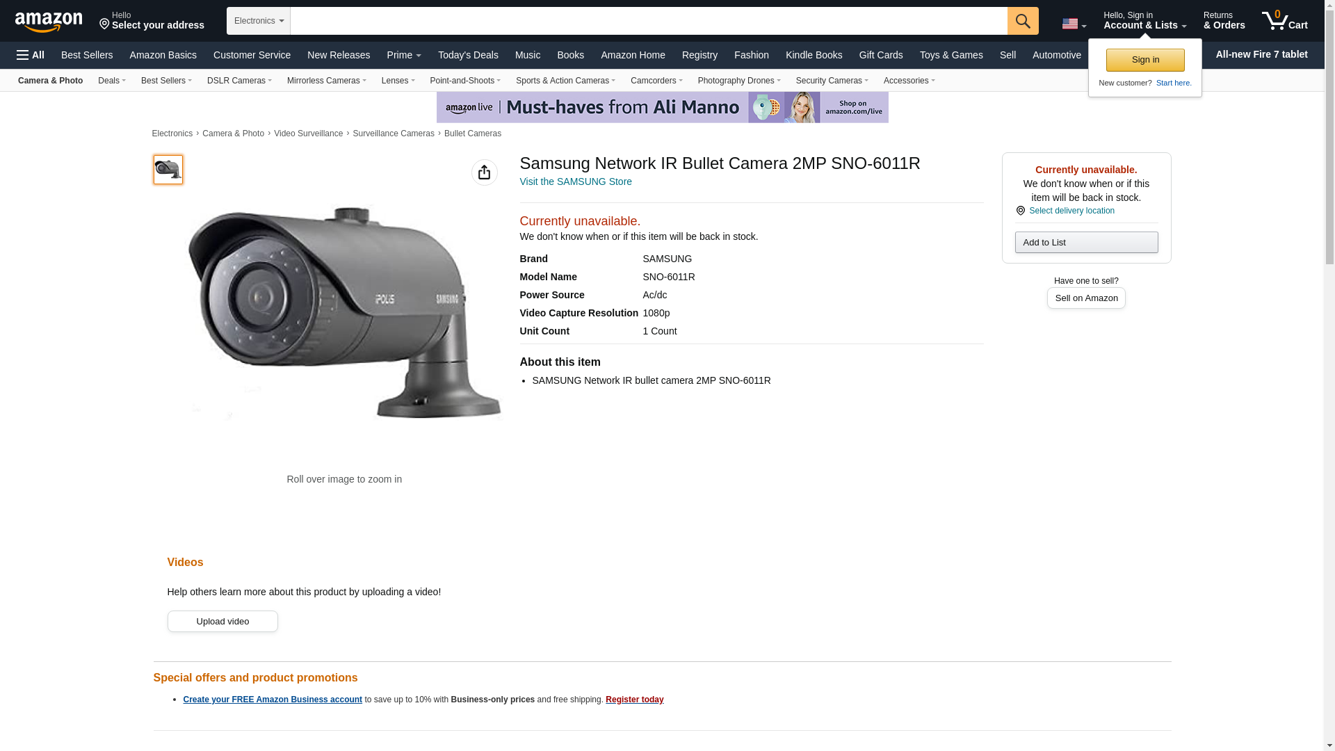- SAMSUNG Network IR bullet camera 2MP SNO-6011R