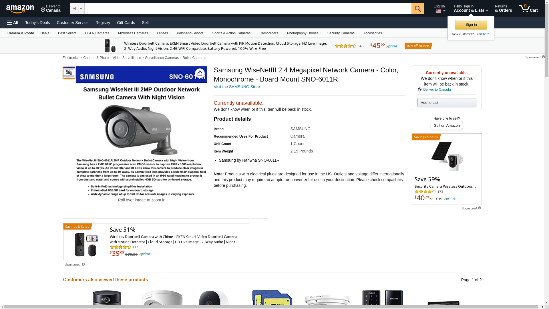 ![]() surveillance-video.com | SNO-6011R | 1 | -2 | 1 | 1 @ $338.58 |