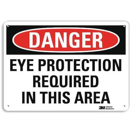 Danger Sign, Vertical Rectangle, Number of Printed Sides 1, English, Sign Format Traditional OSHA, Sign Legend Eye Protection Required In This Area, Sign Legend Background Color White, Sign Legend Style Text