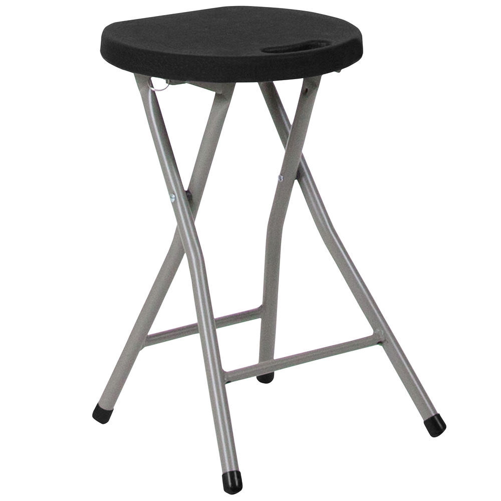 - Always have extra seating on hand without giving up a lot of room with this backless stool that folds flat for storage; Integrated handle for easy carrying