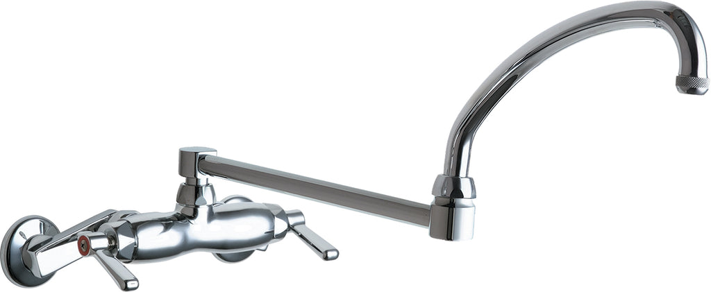 Chicago Faucet 445-DJ21ABCP Full Flow Outlet Two Handles Wall Mount Sink Faucet, 3"-8 3/8"