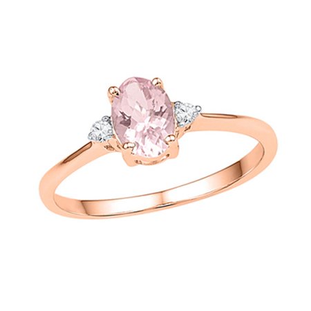 10k Ladies Rose Gold Diamond & Oval Morganite Gemstone Ring 0.63CT