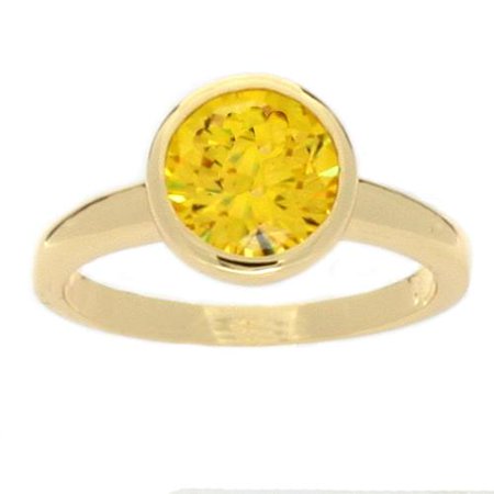 <ul> <li>Gemstone color: Yellow</li> <li>Gemstone shape: Round</li> <li>One bezel-set round-cut cubic zirconia measures 8 mm </li> </ul>
