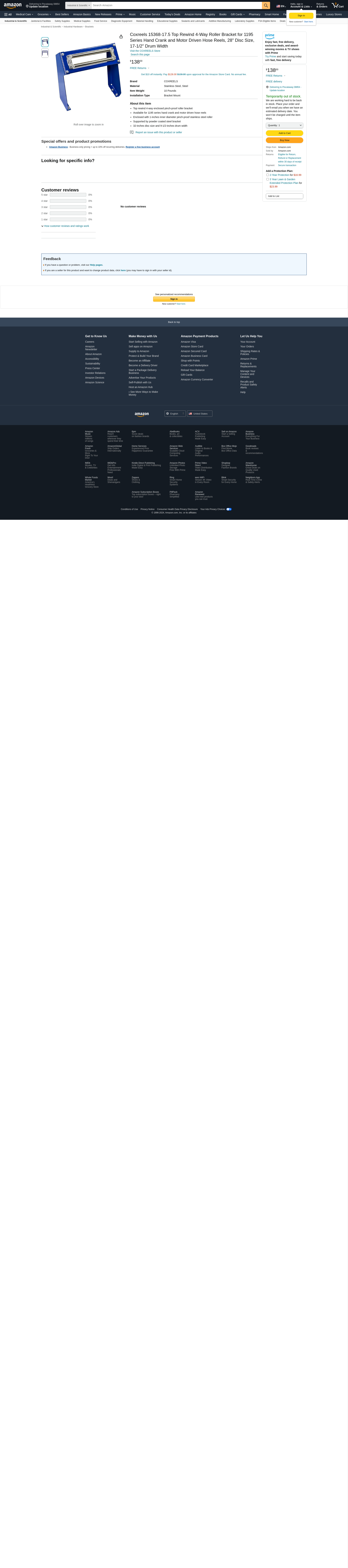 Coxreels 15368-17.5 Top Rewind 4-Way Roller Bracket for 1195 Series Hand Crank and Motor Driven Hose Reels, 28" Disc Size, 17-1/2" Drum Width