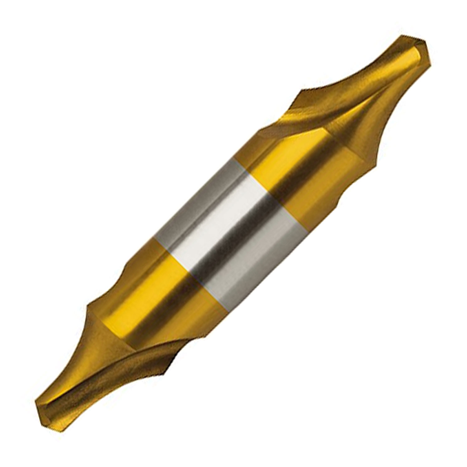 6.3mm Point Right Hand Cut 60? Angle Radiused Center Drill, DIN Standard 333 - Form R, TiN Coated HSS 16.55mm LOC,71mm OAL,16mm Round Body Doubled Ended Series No. 614, Order Code 06.300, Guhring Part #9006140063000