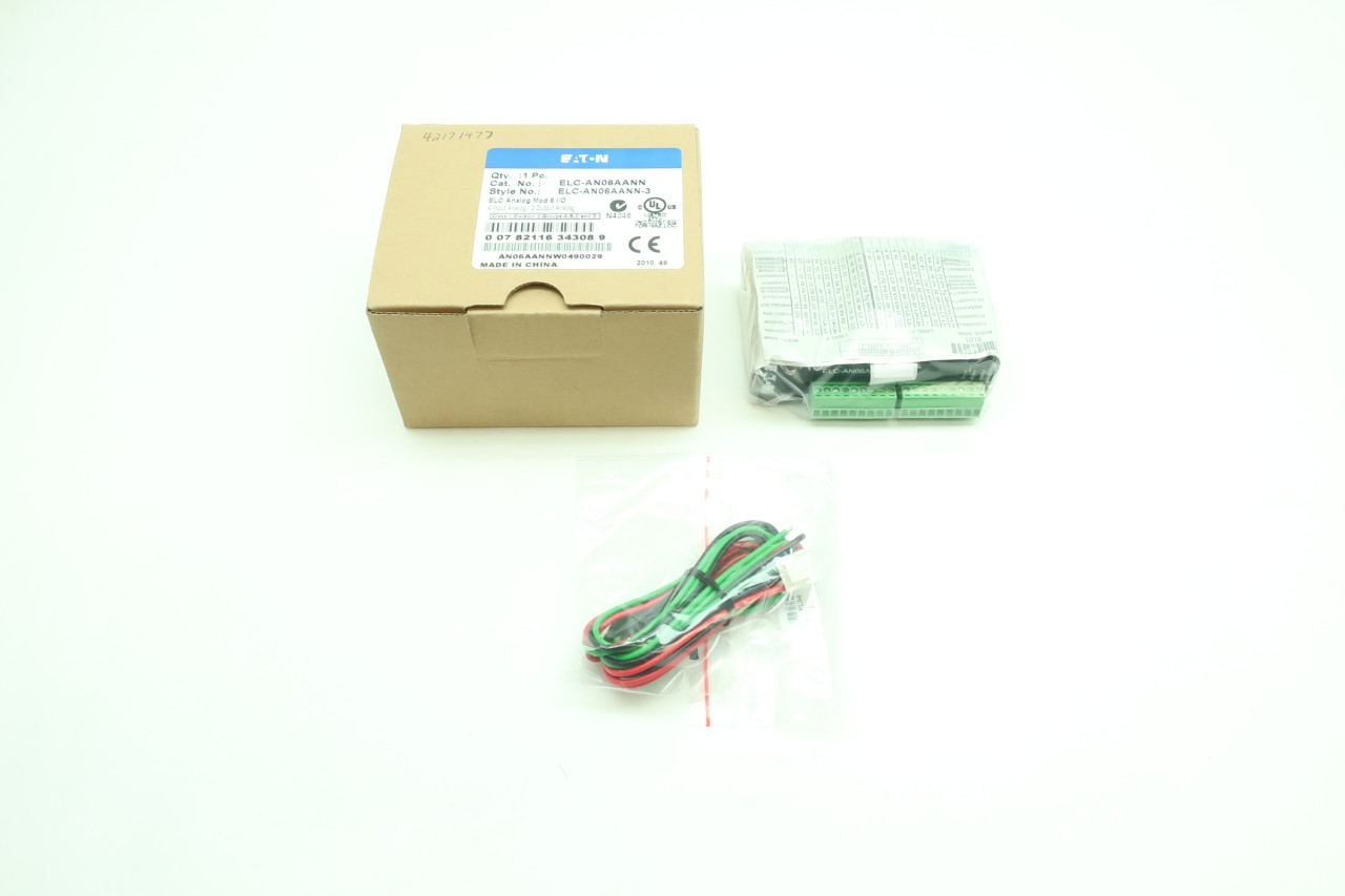 Part Number: 782116343089 <br> Part: Eaton ELC-AN06AANN Expansion Module <br> ELC Analog & Specialty Module. Analog In/Out. Input: 4 Analog. Output: 2 Analog. DIN Rail Mountable. <br> Family / Style:ELC <br> Mounting:DIN Rail <br> Type:Expansion Module <br> Also known as: 782116343089, CUTELCAN06AANN, Eaton, ELC-AN06AANN, Logic Expansion Modules, Programmable Logic Controllers, Measuring, Monitoring & Logic Devices, Control, Automation, Cutler-Hammer, Westinghouse <br> Equivalent to: <ul></ul>