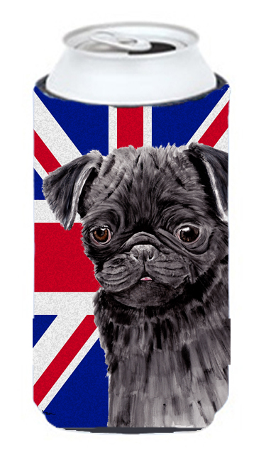 Caroline's Treasures SC9823TBC Pug with English Union Jack British Flag Tall Boy Hugger Can Cooler Sleeve Hugger Machine Washable Drink Sleeve Hugger Collapsible Insulator Beverage Insulated Holder