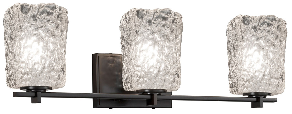 Justice Design Group Lighting GLA-8443-26-CLRT-MBLK Veneto Luce Era 3-Light Bath Bar-Matte Black Finish with Clear Textured Venetian Glass Square with Rippled Rim Shade
