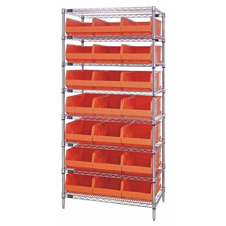 Quantum Storage Open Wire Shelving, 8Shelves, 21Bin, Org - WR8-485OR