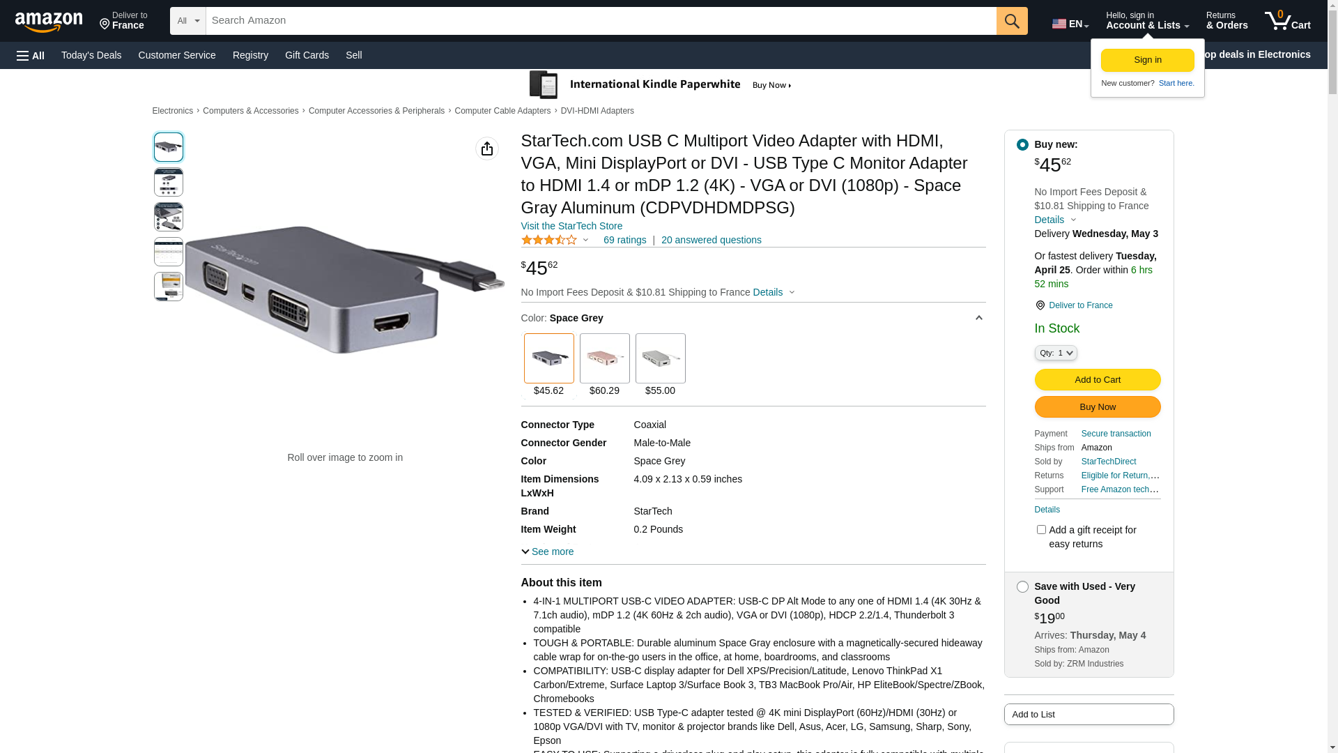 StarTech USB-C Multiport VGA/DVI/HDMI Video Adapter - Space Gray