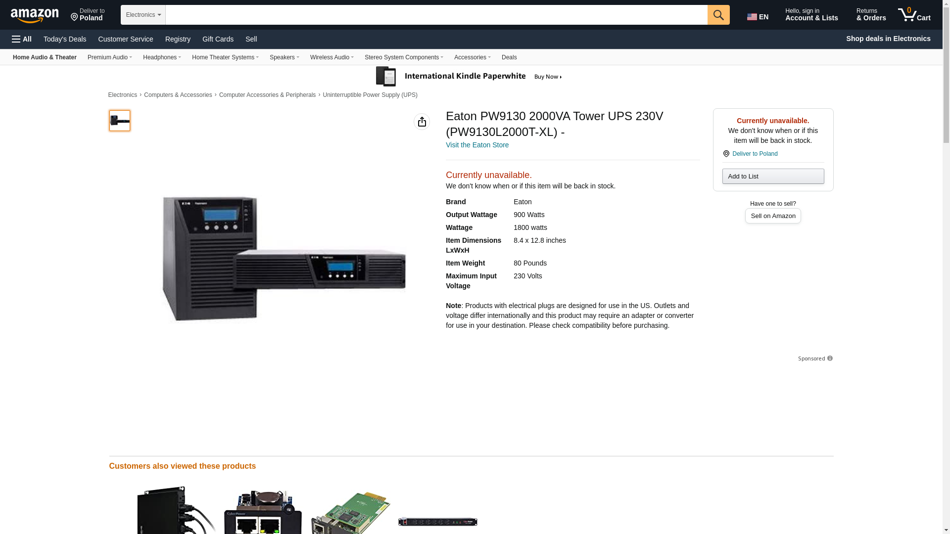 | Feature | Power Device Type: UPS| UPS Technology: Online| Voltage Input: 120V| Circuit Protection: Circuit breaker| Power Device / Form Factor: Tower| Features: Protects against downtime, data loss and process interruption by providing continuous, clean power; Offers premium performance with a 0.9 power factor and up to 95 percent efficiency| Width: 12.8 Inch| Depth: 8.4 Inch| Height: 16.1 Inch| Enclosure Color: Black| Header / Model: PW9130| Power Provided (W): 1.8 KW| Power Provided (VA): 2000 VA |