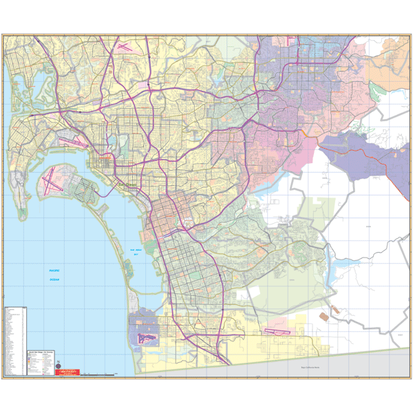 Universal Map 076255228X San Diego CA South Vicinity Wall Map Railed