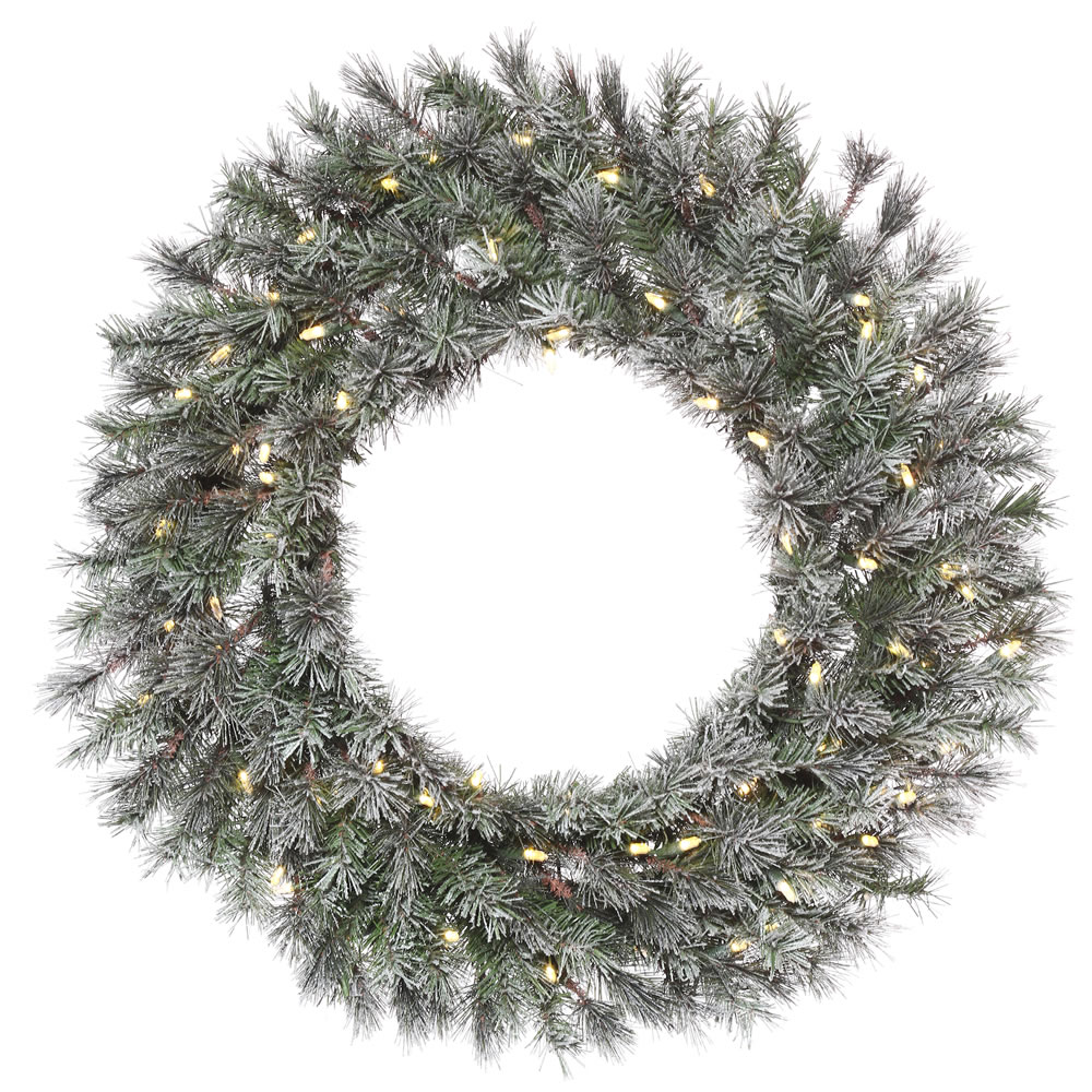 Vickerman K176637LED 36 in. Frosted Lacey Green Wreath with 100 Warm White Dura Light