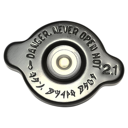 Engineered to increase pressure in cooling system which then increases coolant boiling point; helps prevent boil over.<br> Chrome cap with grooved edges for grip; pressure rating printed on cap in metric and standard psi.<br> Color-coded seals: Red = 1.6K (23 psi), Green = 1.8K (26 psi), Blue = 2.1K (30 psi).<br> High-temperature silicone seals.<br> Includes high-temperature metal film warning decal and adhesive.<br> For competition use on most Hondas, Kawasakis, Suzukis and Yamahas.
