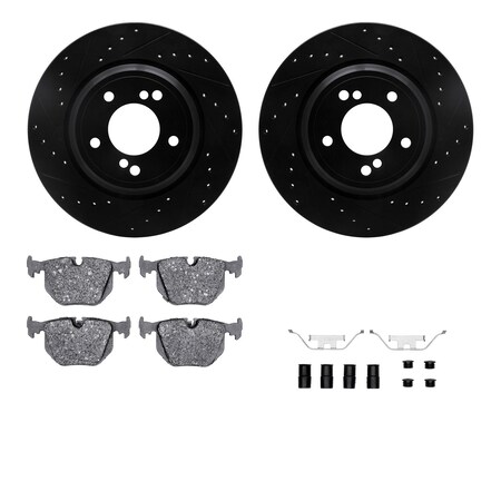 8612-31047, Rotors-Drilled, Slotted-Black w/ 5000 Euro Ceramic Brake Pads incl. Hardware, Zinc Coat