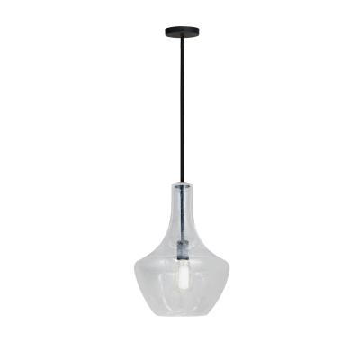 - [Simple Design] – An eye-catching seeded curved glass shade is complemented by a matte black plate. The Harlow pendant light will effortlessly fill your home with ambient light.